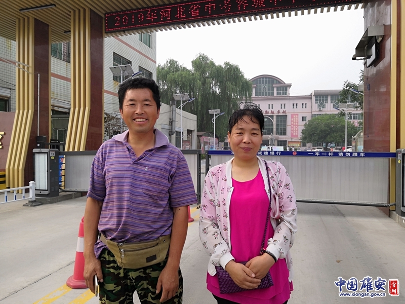 小里鎮西牛營村的李林雪、李春霞夫婦在中央民族大學附屬中學雄安校區陪考。中國雄安官網記者朱偉琳 攝
