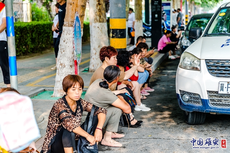 雄縣考生家長在校外陪考。中國雄安官網記者馬夢迪 攝