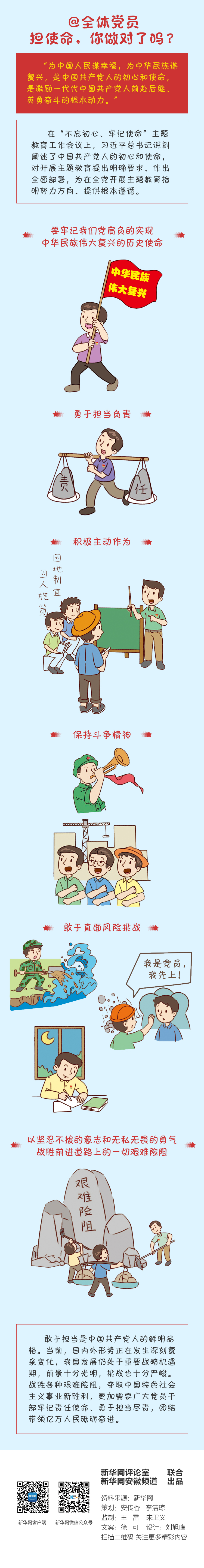 使命呼喚擔當,擔當成就未來。開展“不忘初心、牢記使命”主題教育,擔使命是要牢牢把握的總要求之一。擔使命,就是要牢記我們黨肩負的實現中華民族偉大復興的歷史使命,勇于擔當負責,積極主動作為,保持斗爭精神,敢于直面風險挑戰。