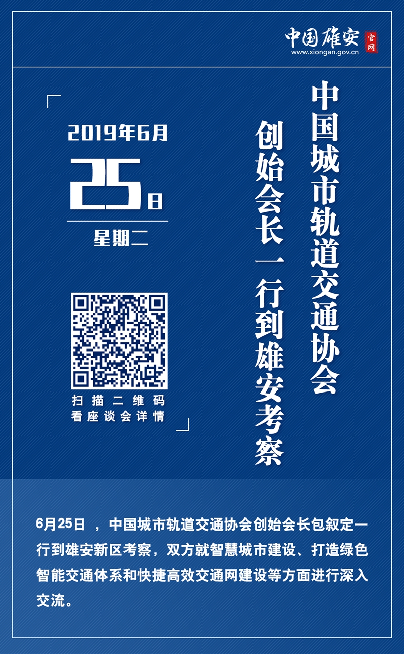 6月25日 ,中國城市軌道交通協會創始會長包敘定一行到雄安新區考察。
