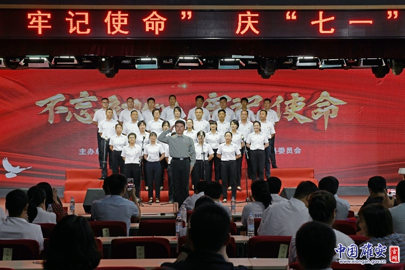 演出在詩歌朗誦《千年雄安》中正式拉開帷幕,朗誦者們聲情并茂,用充滿激情的詩句表達了對黨的忠誠和希冀。隨后,《走向復興》《沒有共產黨就沒有新中國》《共筑中國夢》《我愛你中國》等觀眾耳熟能詳的愛國歌曲被一一唱響,歌聲催人奮進,氣勢振奮人心,唱出了對黨、對祖國的濃厚深情。最后,全體齊唱《歌唱祖國》,以整齊洪亮的歌聲為演出畫上圓滿句號。