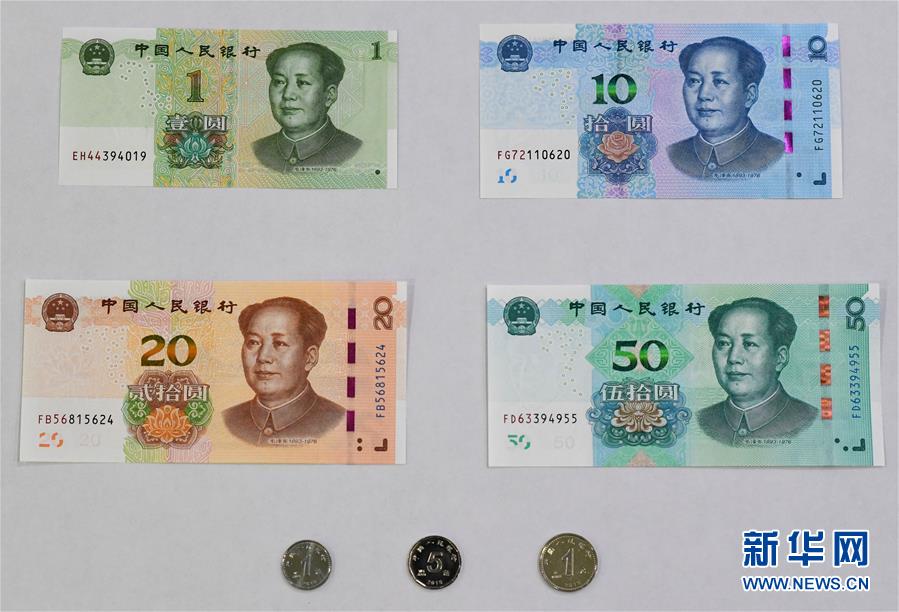 2019年版第五套人民幣50元、20元、10元、1元紙幣和1元、5角、1角硬幣(8月30日攝)。8月30日,2019年版第五套人民幣正式發行。在保持現行第五套人民幣主圖案等相關要素不變的前提下,新版提高了票面色彩鮮亮度,優化了票面結構層次與效果,提升了整體防偽性能。新華社記者 陳曄華 攝