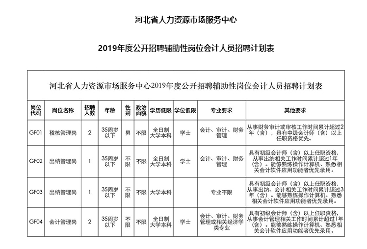 (2)《河北省人力資源市場服務中心2019年度公開招聘輔助性崗位會計人員報名表》