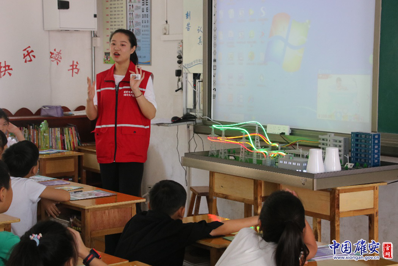 中國雄安官網9月3日電(記者封俊龍)蛙聲蟬鳴悄然遠去,美麗的校園里重新響起歡聲笑語。9月1日、2日,國網雄安新區供電公司共產黨員服務隊前往安新縣第二小學、端村小學、容城縣白塔小學、胡村小學、雄縣道三小學、龍灣中學,為同學們帶來了生動活潑的開學第一課——安全用電知識。