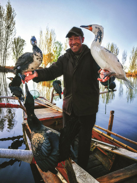 魚鷹和老人。李輝攝(資料圖)