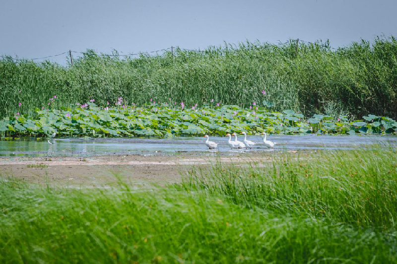 白洋淀邊的白鵝。馬夢(mèng)迪 攝