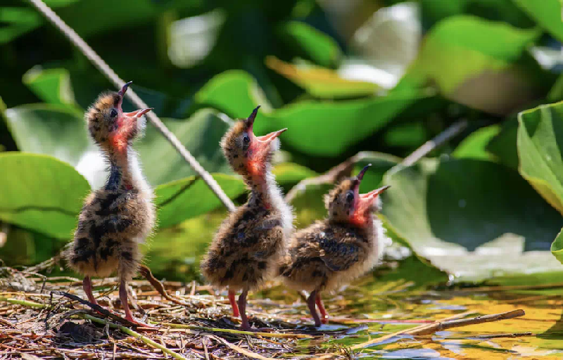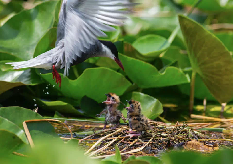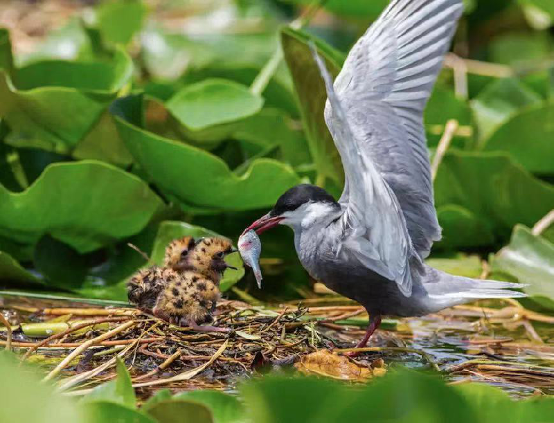 幾只須浮鷗幼雛在白洋淀濕地嗷嗷待哺。趙克琪 攝