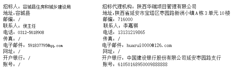 本招標項目容城縣城區老舊小區鍋爐低氮鍋爐低氮公開競爭選取代理機構已批準建設,項目業主為容城縣住房和城鄉建設局,建設資金來自財政資金出資比例為100%,招標人為容城縣住房和城鄉建設局。項目已具備招標條件,現對該項目施工進行公開招標。