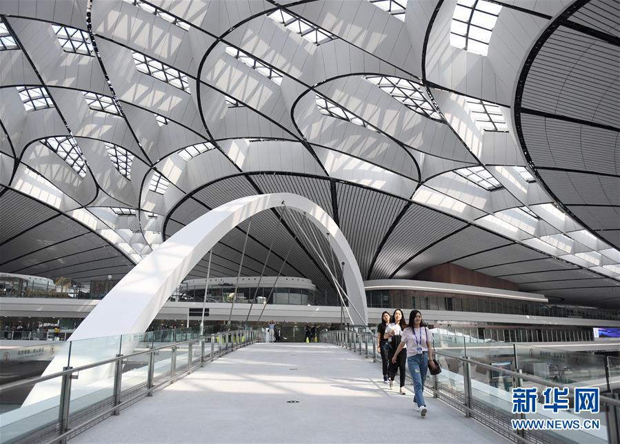 9月4日拍攝的北京大興國際機場內部。隨著各項驗收的完成,北京大興國際機場投運在即。北京大興國際機場是目前世界最大的綜合交通樞紐,擁有全球首座高鐵地下穿行的機場航站樓、全球首座雙層出發(fā)雙層到達的航站樓、世界最大單體航站樓。新華社記者 張晨霖 攝