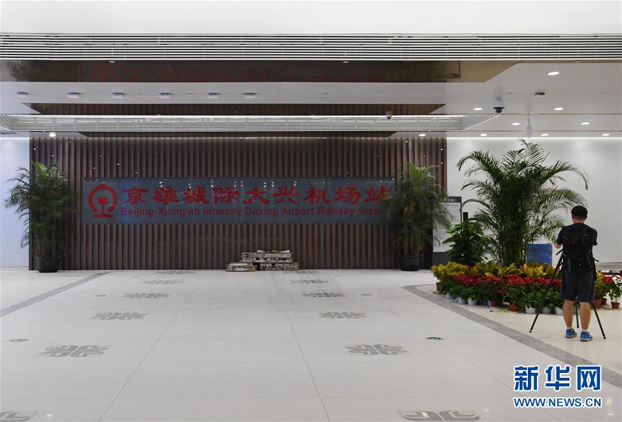 9月4日拍攝的位于北京大興國際機場內部的京雄城際大興機場站。隨著各項驗收的完成,北京大興國際機場投運在即。北京大興國際機場是目前世界最大的綜合交通樞紐,擁有全球首座高鐵地下穿行的機場航站樓、全球首座雙層出發雙層到達的航站樓、世界最大單體航站樓。新華社記者 張晨霖 攝