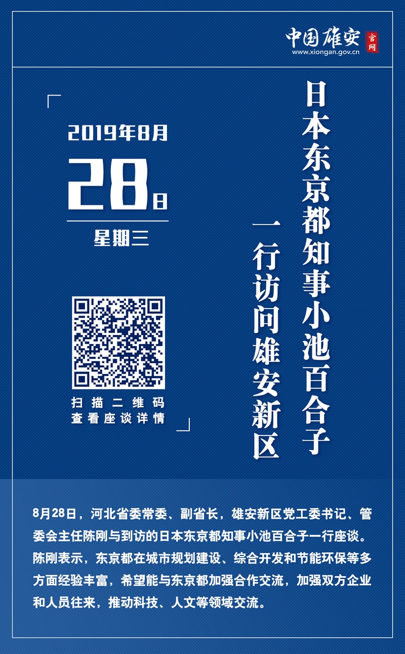8月28日,河北省委常委、副省長,雄安新區黨工委書記、管委會主任陳剛與到訪的日本東京都知事小池百合子一行座談。