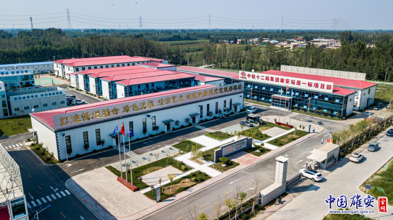 京雄城際鐵路雄安站房一標(biāo)工人生活區(qū)——工人職工之家航拍圖。中國雄安官網(wǎng)記者馬夢迪 攝