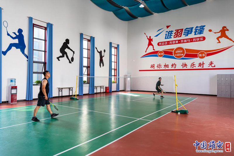 項(xiàng)目部工作人員正在打羽毛球。中國雄安官網(wǎng)記者馬夢迪 攝