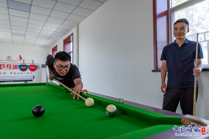 項(xiàng)目部工作人員正在打臺球。中國雄安官網(wǎng)記者馬夢迪 攝