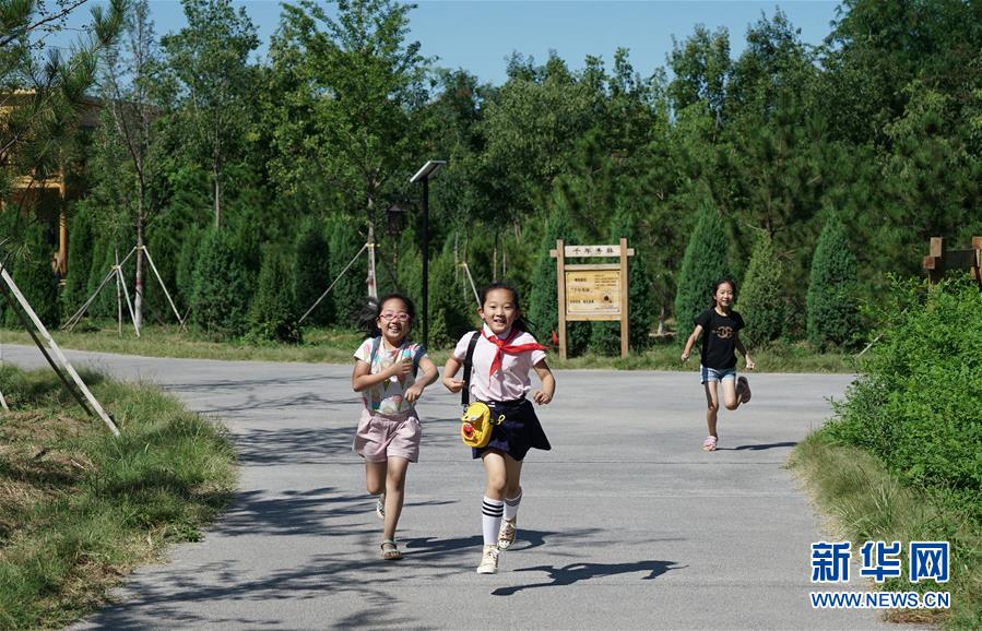 小學生們在千年秀林內玩耍(8月29日攝)。記者從河北雄安新區管委會了解到,目前,雄安新區已轉入大規模實質性開工建設階段,今年69項重點建設項目已開工20個,剩余項目正在全力推進。京雄城際鐵路、千年秀林、白洋淀生態修復等項目建設穩步推進。新華社記者 牟宇 攝
