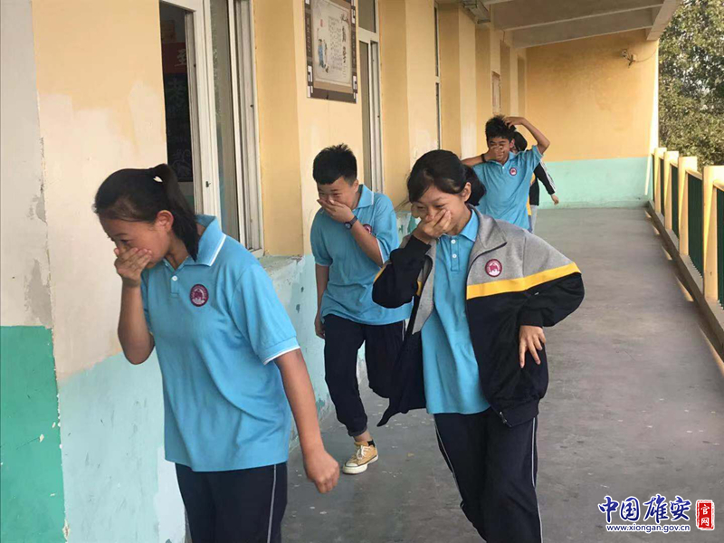 南陽中學學生進行火災逃生演練。中國雄安官網記者王京卓 攝