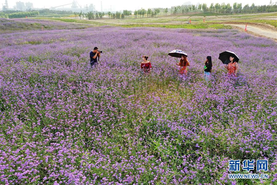 這是游客在唐山市開平區(qū)花海中拍照(9月5日無人機(jī)拍攝)。 河北省唐山市開平區(qū)東湖區(qū)域曾因煤礦無序開采,區(qū)域內(nèi)堆場、料場星羅棋布,道路坑洼不平,成為橫亙于開平區(qū)與唐山市主城區(qū)之間的“城市裂痕”。2018年8月,唐山市開始治理這一區(qū)域,推動唐山花海項目,目前已初見成效,廢棄煤礦變成“千頃花海”。新華社記者 楊世堯 攝