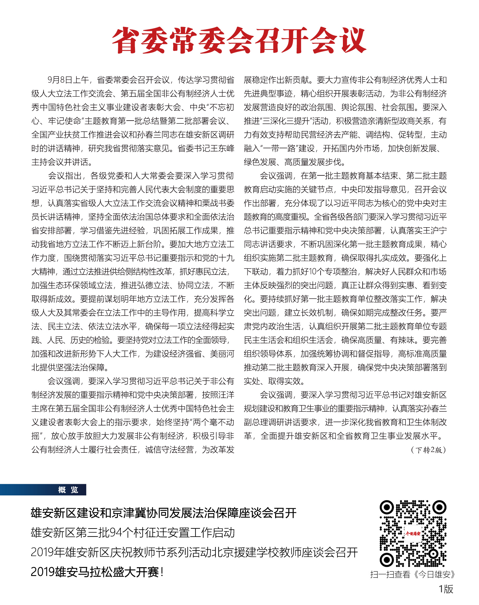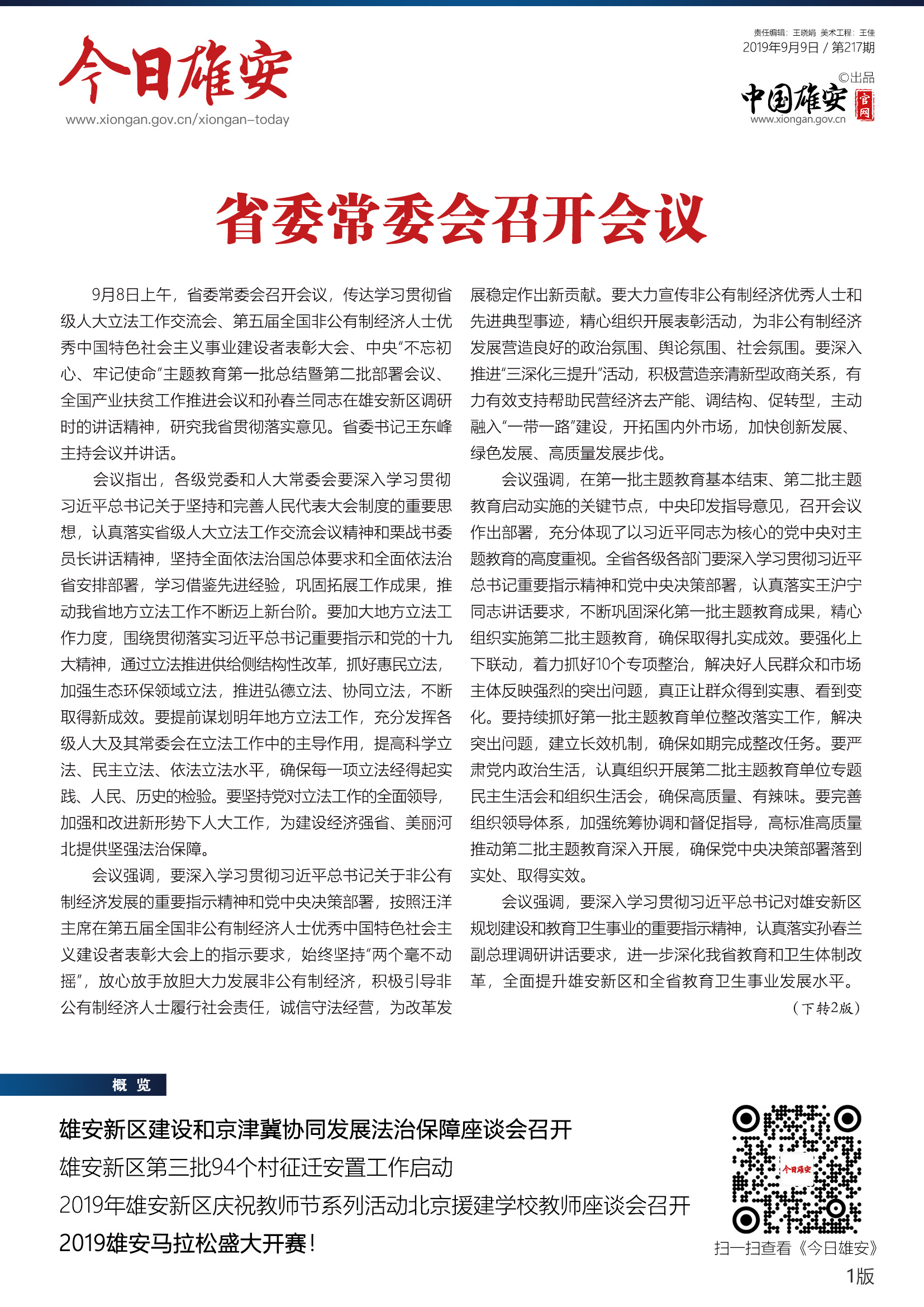 《今日雄安》 2019年9月9日 第217期
