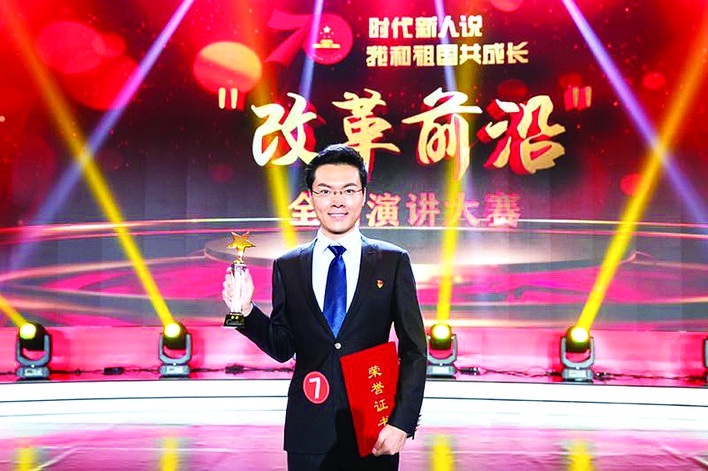 張涵碩:“時代新人說——我和祖國共成長”演講大賽是慶祝新中國成立70周年群眾性主題宣傳教育活動的重要組成部分,“改革前沿”主題賽事是大賽第二階段的第八場賽事。來自全國各省、自治區、直轄市和新疆生產建設兵團等代表隊的34名選手參加了預、決賽。我和其他兩人獲得金獎。11月,我們3人將在北京參加演講大賽總決賽。