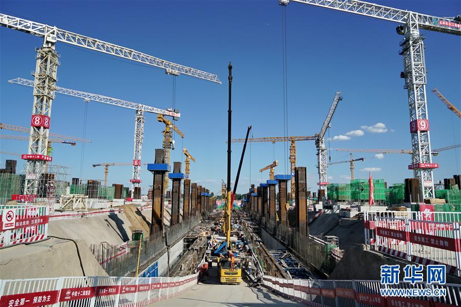 這是8月29日拍攝的京雄城際鐵路雄安站施工現(xiàn)場。新華社記者 牟宇 攝