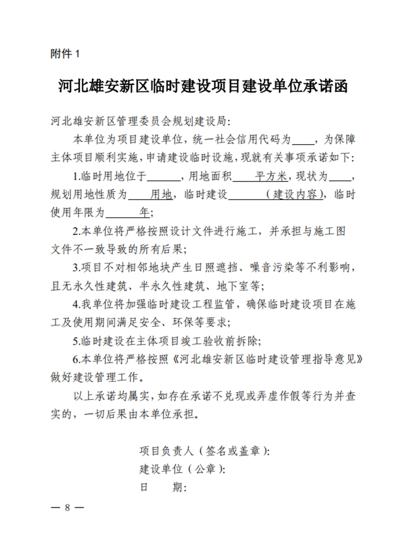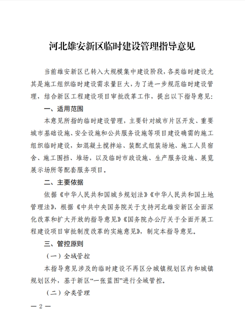 關于印發《河北雄安新區臨時建設管理指導意見》的通知