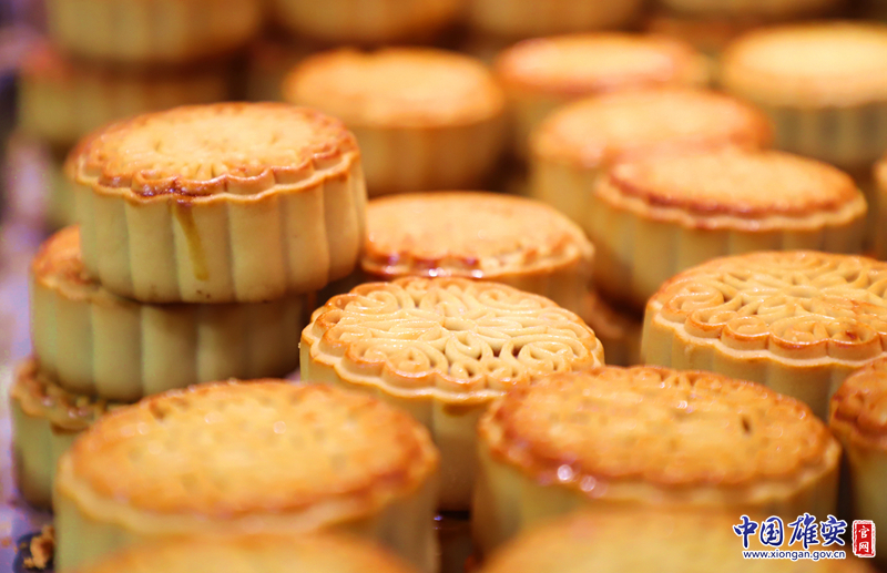 在燈光的照射下,金黃的月餅顯得格外誘人。中國雄安官網(wǎng)記者石萍婷 攝