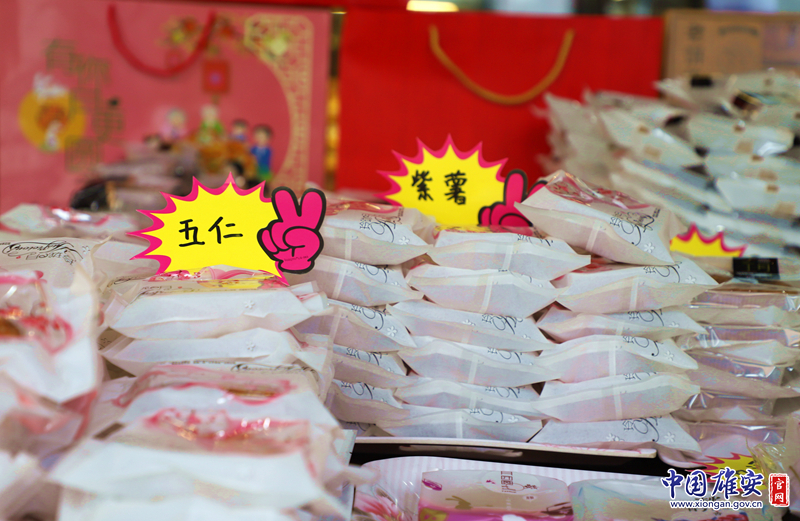 五仁、紫薯、咸蛋黃……多種口味的月餅供顧客選擇。中國雄安官網記者石萍婷 攝