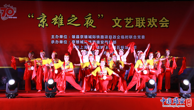 當晚,在中鐵上海工程局京雄城際鐵路雄縣制梁場,300余名京雄城際鐵路建設者和雄縣地區鐵路沿線的民眾觀看了“京雄之夜”文藝聯歡會。本次聯歡會共設置了16個節目,節目圍繞京雄城際鐵路建設實際創作,由雄縣文藝愛好者和鐵路建設者共同演繹,精彩的表演贏得觀眾的熱烈掌聲。
