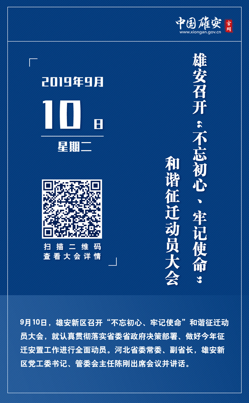 9月10日,雄安新區召開“不忘初心、牢記使命”和諧征遷動員大會。
