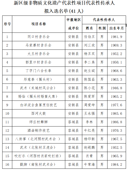 附件:新區(qū)級(jí)非物質(zhì)文化遺產(chǎn)代表性項(xiàng)目代表性傳承人擬入選名單