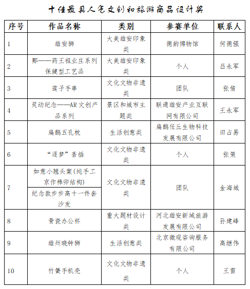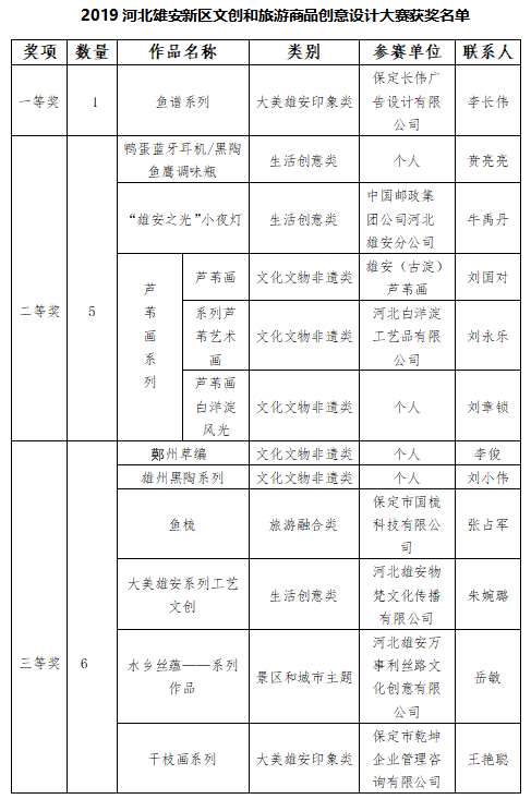 由文化和旅游部資源開發司指導,河北雄安新區管理委員會公共服務局、改革發展局和河北雄安新區宣傳中心聯合主辦的以“大美雄安 雄安游禮”為主題的2019河北雄安新區文創和旅游商品創意設計大賽經專家初評、網絡投票、專家復評及公示,現將獲獎名單予以公告。