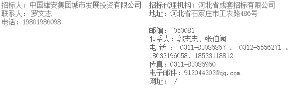 本次招標公告同時在中國招標投標公共服務平臺(http://www.cebpubservice.com/)、河北省招標投標公共服務平臺(http://www.hebeieb.com.cn/)以及雄安新區(qū)公共資源交易服務平臺(http://www.xaprtc.com/)上發(fā)布。投標人因輕信其他媒體造成的損失,招標人和招標代理機構概不負責。