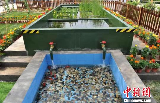 圖為邵莊子村農村污水、垃圾、公廁等環境問題一體化綜合系統治理先行項目展示區。經處理過的污水清澈見底。韓冰 攝