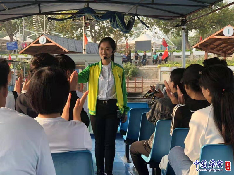 陳紅為游客講解景點(diǎn)知識(shí)。雄安新區(qū)公共服務(wù)局供圖