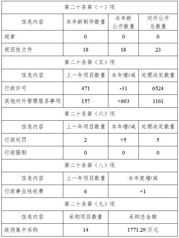 本報告依據《中華人民共和國政府信息公開條例》(以下簡稱《條例》)規定編制,全文包括總體情況、主動公開政府信息情況、收到和處理政府信息公開申請情況、政府信息公開行政復議及行政訴訟情況、存在的主要問題及改進情況等內容。報告所列數據統計期限為2020年1月1日至2020年12月31日。