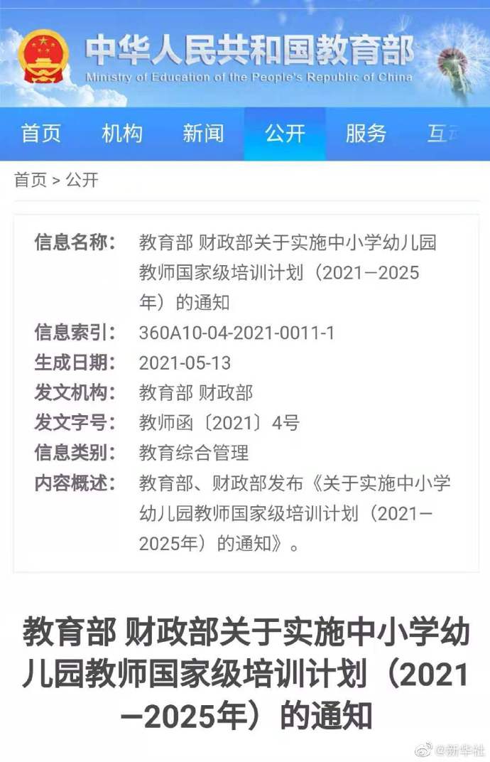 記者19日從教育部了解到,教育部、財政部近日印發《關于實施中小學幼兒園教師國家級培訓計劃(2021-2025年)的通知》。通知明確,“十四五”期間,重點支持中西部欠發達地區農村義務教育學校、幼兒園骨干教師、校園長和培訓者深度培訓。輻射帶動省、市、縣、校級教師培訓,實現教師培訓全覆蓋。通知強調,突出教師核心素養培養,將思想政治和師德師風作為必修內容。加大體育、音樂、美術、勞動、科學等緊缺學科教師培訓力度,將國家安全、法治教育、生態教育、國家通用語言文字、幼小銜接、少先隊工作、預防校園欺凌等內容納入教師校園長培訓。(記者胡浩)