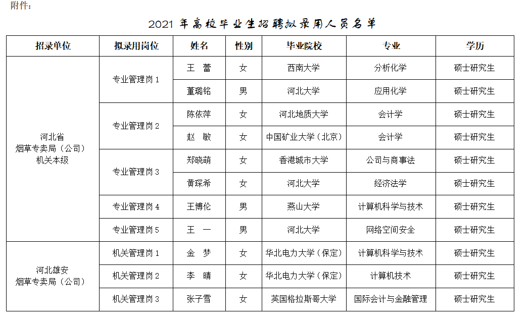 附件:2021年高校畢業生招聘擬錄用人員名單