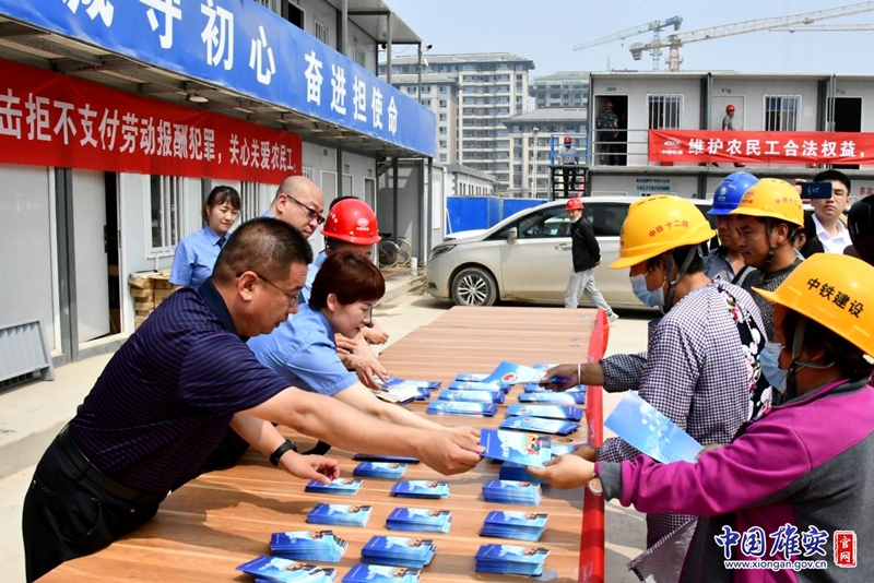 活動(dòng)現(xiàn)場,雄安新區(qū)公共服務(wù)局通過發(fā)放《條例》手冊、宣講政策、答疑釋惑、張貼欠薪線索反映平臺二維碼等方式,督促各類企業(yè)用人單位合法用工,自覺履行工資支付主體責(zé)任,引導(dǎo)農(nóng)民工依法維權(quán)。