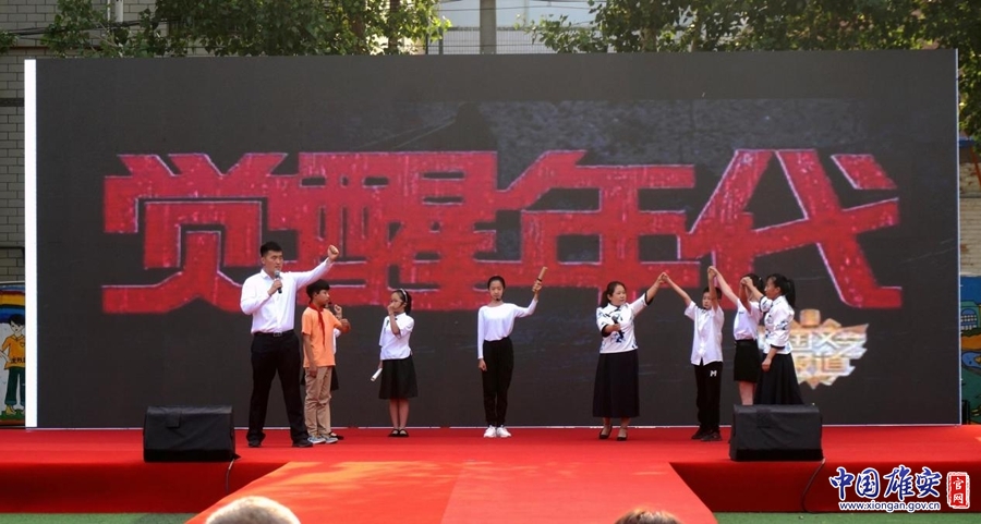 中國人民大學附屬小學雄安校區(溝西小學)師生們表演節目《覺醒年代》。中國雄安官網記者黃海 攝