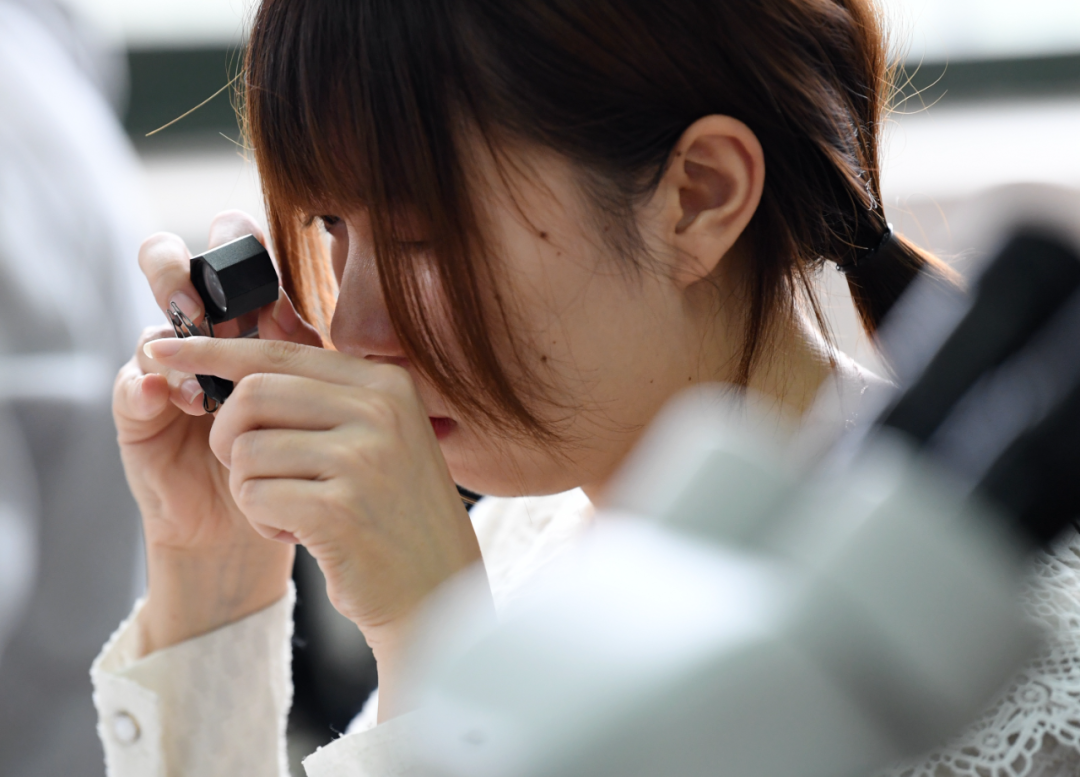 在長安大學(xué)珠寶鑒定實(shí)驗(yàn)室,地質(zhì)學(xué)專業(yè)寶玉石學(xué)與珠寶鑒定方向的學(xué)生正在練習(xí)實(shí)驗(yàn)儀器的使用方法。新華社照片