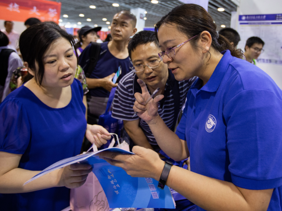 考生家長在咨詢會上了解高校招生信息。新華社照片