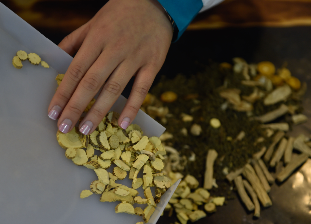 圖為中醫(yī)藥專業(yè)的學(xué)生在調(diào)配中藥。新華社照片
