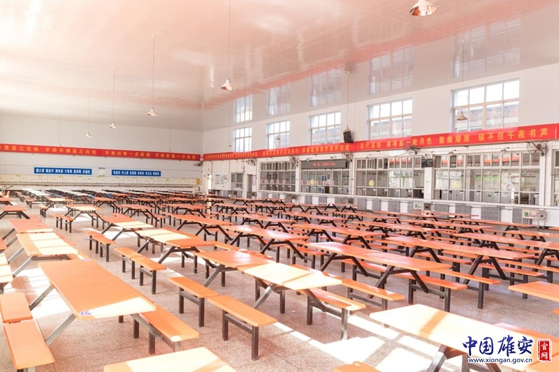 6月4日,石家莊二中雄安校區河北安新中學食堂餐桌已備齊,保證考生安全用餐。中國雄安官網記者李鑫 攝