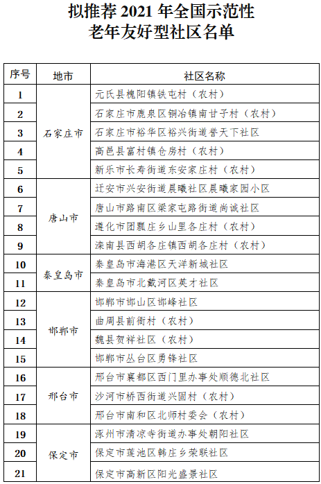 附件:擬推薦2021年全國示范性老年友好型社區名單