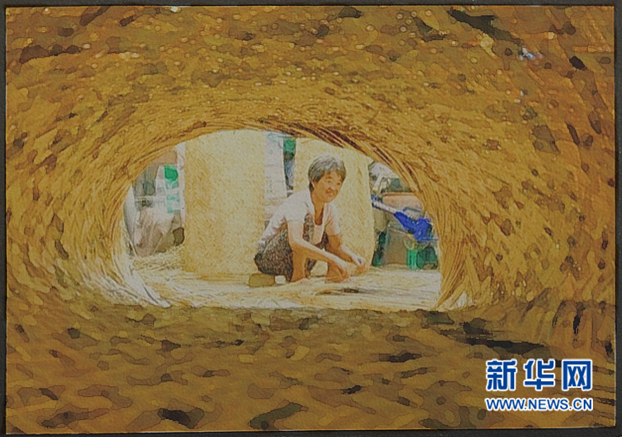 葦子選好,這下來就是軋葦、編織,最后修整。一張葦席可以同時由兩人或兩人以上編織。葦席品種繁多,形態各異、用途不一,人們根據用途將葦席分為炕席、囤席、包裝席、裝飾席等類別。