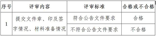 評審小組對報名文件進行初步評審。報名人如未通過其中任一項,初步審查將視為不合格,報名人只有通過初步評審,才能進入詳細評審。