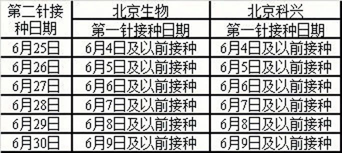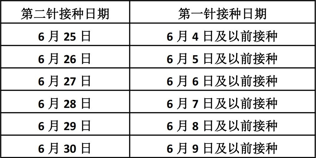 自6月10日-30日,容城縣在全縣范圍內集中開展新冠病毒疫苗第二劑次接種活動,此次活動已接近尾聲。7月1日起,根據國家和省統一安排,將不再組織集中接種第二劑次新冠疫苗。請接種第一劑次滅活新冠疫苗滿21天的市民朋友們,盡快到就近接種點接種第二劑次新冠疫苗。如果您還不清楚自己接種第二劑次疫苗的時間,請參照下表作出安排。