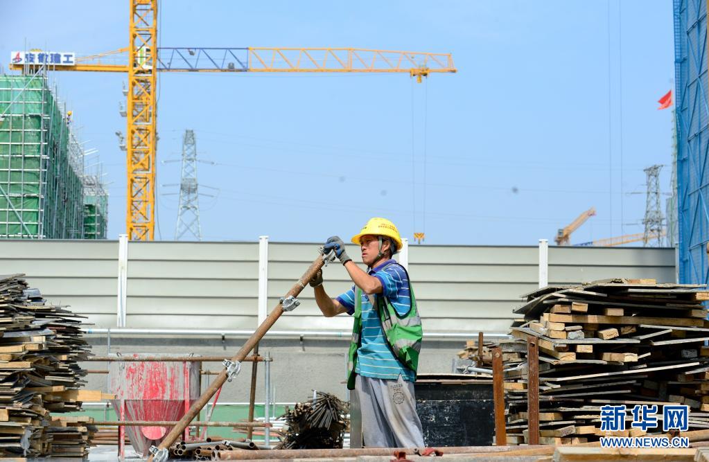 7月3日,中鐵十二局的工人在雄安新區容西片區建設現場施工。