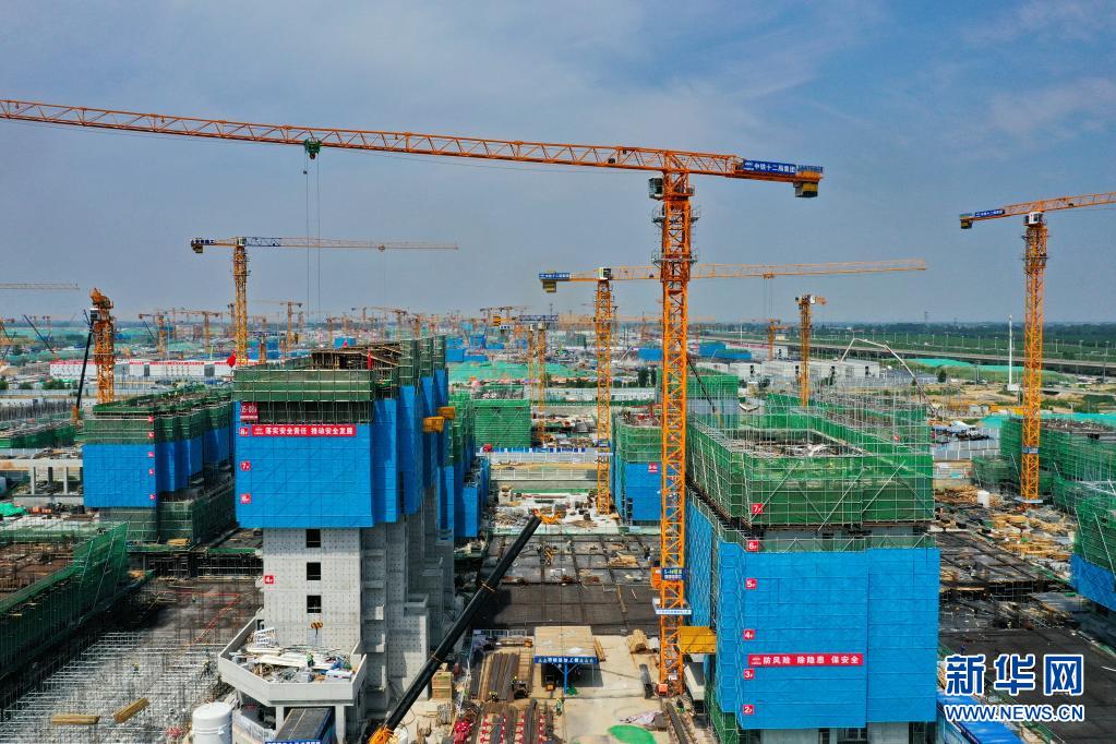 這是雄安新區容西片區建設現場(7月3日攝,無人機照片)。