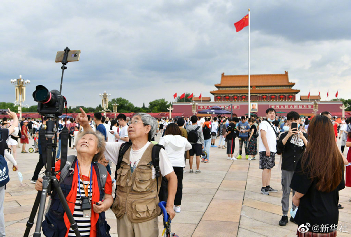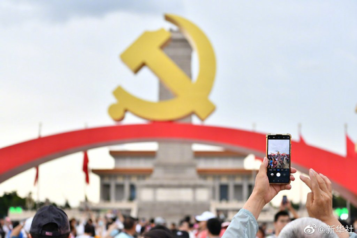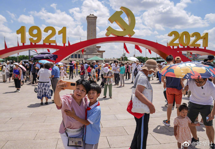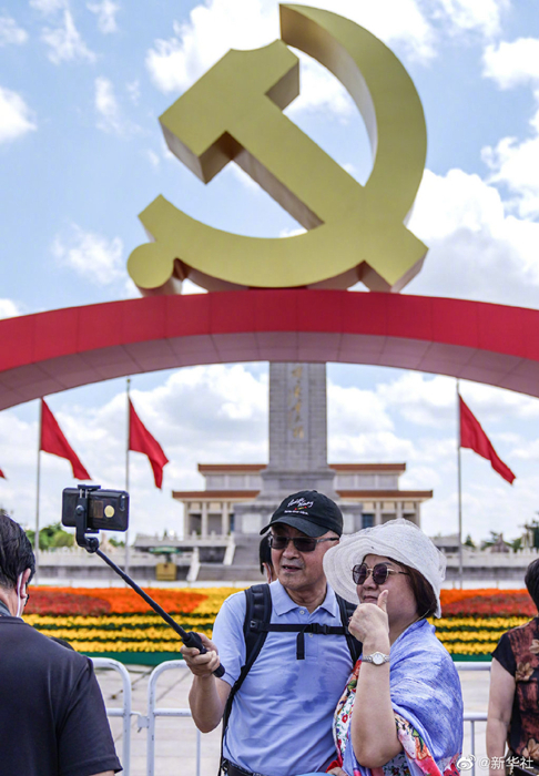 慶祝中國共產黨成立100周年大會結束后,天安門廣場迅速完成轉換施工。7月2日恢復對外開放后,天安門廣場慶祝景觀吸引了大批游客前往拍照。據悉,天安門廣場保留的景觀將開放到7月15日。 ????